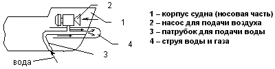 Очевидно, эти особенности зеркальны относительно плоскости, лежащей между пограничными слоями ТС и ОС. Рассмотрим ряд примеров. Д-37. А.с. СССР 85 781 (БИ, 8-1951). Глиссер для плавания с применением газовой прослойки, образуемой выпуском выхлопных газов в зареданное пространство, отличающийся тем, что выхлопные газы подводятся и под редан, причем поток газов за редан и под редан регулируется задвижками, установленными на газопроводах. Д-38. А.с. СССР 288 576 (БИ, 36-1971). Устройство для создания воздушной смазки на поверхности плоского днища судна, выполненного в виде системы труб подающих под днище воздух, отличающееся тем, что, с целью формирования устойчивых воздушных прослоек (каверн) на плоскости днища .....